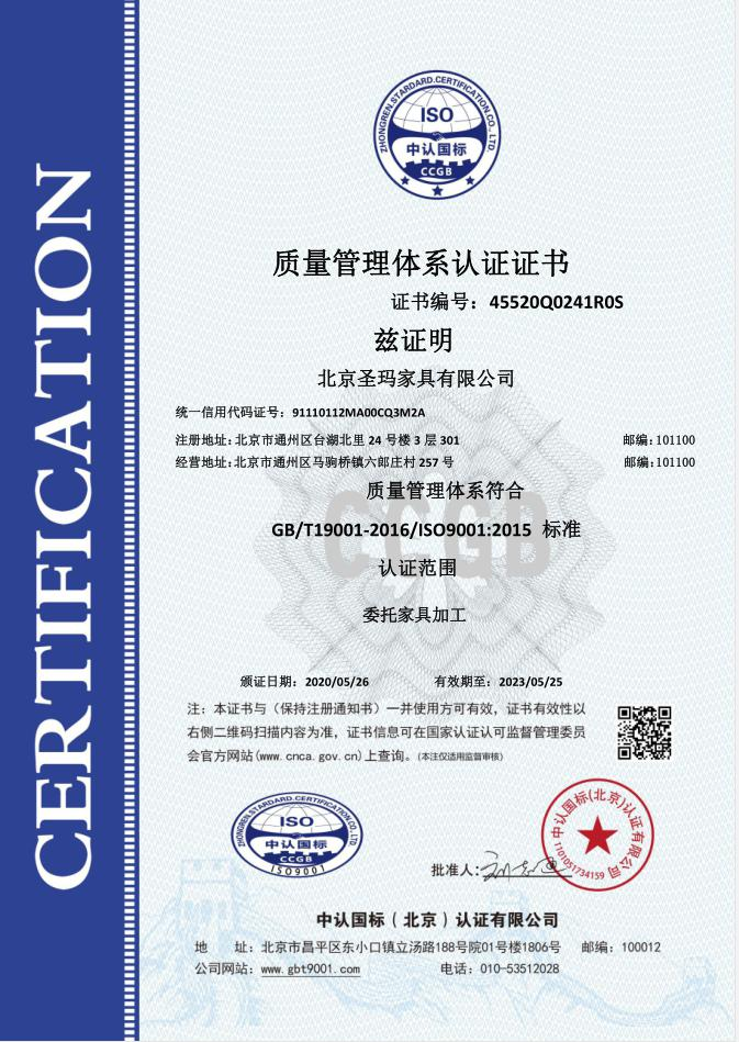 北京圣瑪家具有限公司是以設計研發(fā)、生產(chǎn)、銷售、服務為一體的專業(yè)化辦公家具制 造企業(yè);主要經(jīng)營辦公家具、校園家具、實驗室家具、酒店套房、全屋定制類等家具。 公司成立于 2017 年,生產(chǎn)基地位于天津市蘆臺經(jīng)濟開發(fā)區(qū)華澳盛世家具有限公司院 內(nèi),占地面積約 10000 平米,擁有員工 100 人左右,其中高級技術(shù)人員達 15%以上。 公司采用了南興、先達系列等先進生產(chǎn)設備,建立專業(yè)流水線,具備先進的生產(chǎn)及加 工能力。公司設有專業(yè)的產(chǎn)品設計部、運營部、質(zhì)檢部等,提供專業(yè)的 CAD 平面圖、立面 圖級效果設計圖紙。 使用優(yōu)質(zhì)的進口原材料及配件;嚴把進貨渠道,所用材料符合國家環(huán)保標準要求。款 式上依據(jù)人體工程學原理,追求多樣化的設計風格。按照 “ISO900/ISO14001 族標準” 的 要求,嚴格控制每一個環(huán)節(jié)。 并本著“以質(zhì)量求發(fā)展,向管理要效益,顧客滿意為焦點,持續(xù)改進,共筑偉業(yè)”的 宗旨方